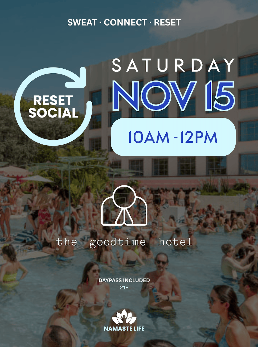 The Goodtime Hotel invites guests to hit reset with a morning of wellness, community and good vibes with Namaste Life at The Pool at The Goodtime Hotel on Saturday, November 15, from 10 a.m. to noon. Set poolside on the hotel’s iconic pink-and-turquoise deck, the morning will feature fitness activities led by Jacked Rabbit, including yoga and a revolving HIIT station, plus power vinyasa yoga by Monika Mo Horvat, followed by a complimentary day pass to the pool party from noon to 6 p.m. Guests will enjoy product samples, tastings and services from top wellness brands, including Celsius energy drinks, Koia plant protein shakes, Saint James Iced Tea, My Liquid Youth collagen mocktails, No B.S. Skincare and more. Expect chair massages, music from a live DJ and exciting giveaways. Guests must check in before 11 a.m. to receive pool access and all attendees must be 21 and over. Tickets are $25 and can be purchased at https://www.sweatpals.com/event/reset-social-at-strawberry-moon/2025-11-15?aff=goodtime.
