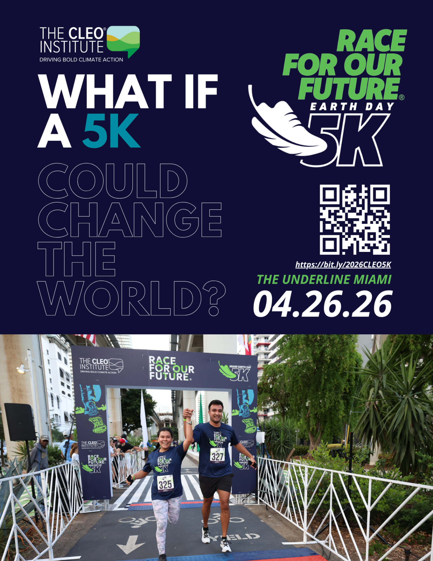 The CLEO Institute 4th Annual Race for Our Future Earth Day 5K April 26 @ 6:30 am - 10:30 am The Underline Brickell 800 SW 1st Avenue, Miami ... Read more $40