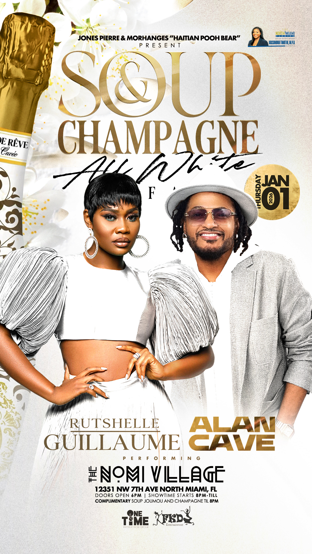January 1, 2026 @ 6:00 pm - 11:30 pm Soup and Champagne All-White Affair The NoMi Village 12351 NW 7th Ave., North Miami, F, United States ... Read more $75.00