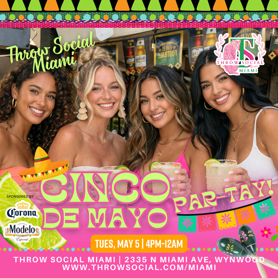Cinco de Mayo Fiesta in Wynwood | THRōW Social Miami May 5 @ 4:00 pm - 11:30 pm Throw Social Miami 2335 N Miami Ave, Miami, FL, United States ... Read more